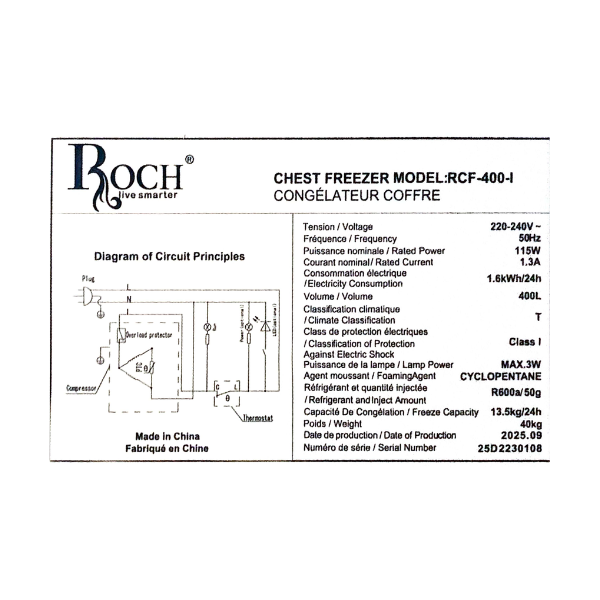 Ce congélateur horizontal Roch RCF-400-G est très performant. En effet, il a un bon pouvoir de congélation quotidien. De plus, il congèle rapidement et dispose d’un panier pour un rangement optimal de vos produits.