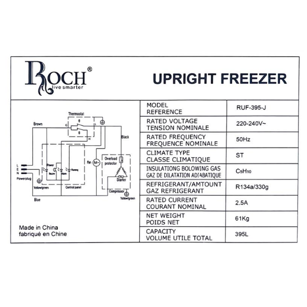 Congélateur Vertical Roch RUF395J – 395L | Grande Capacité et Performance