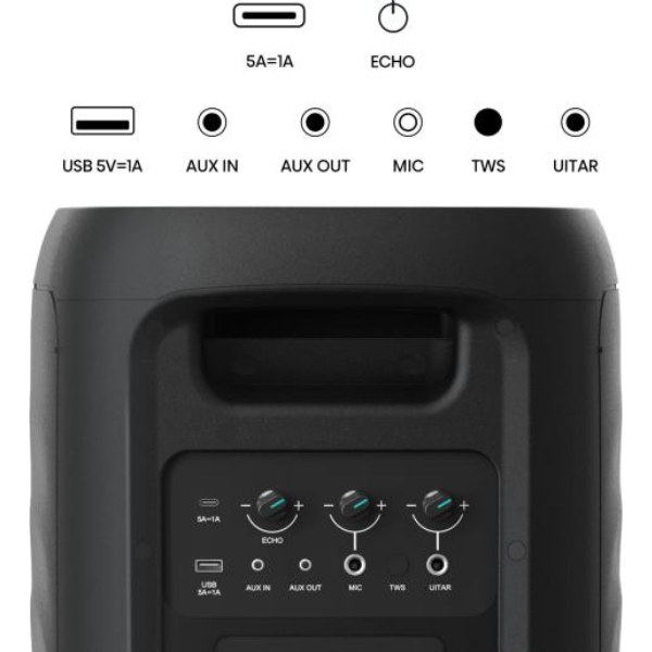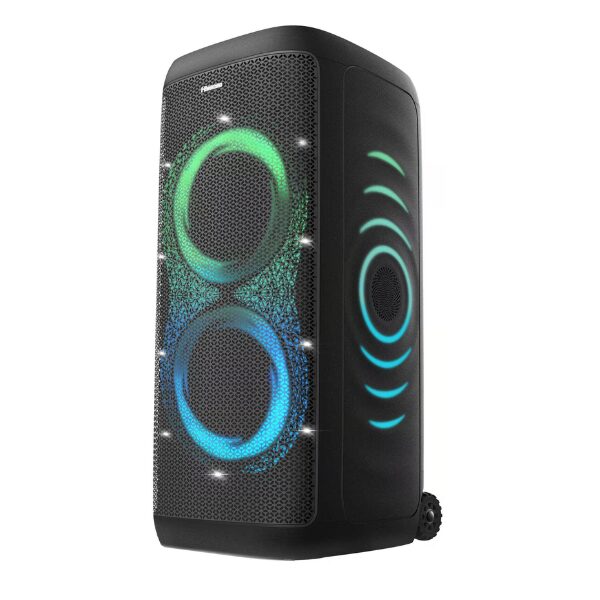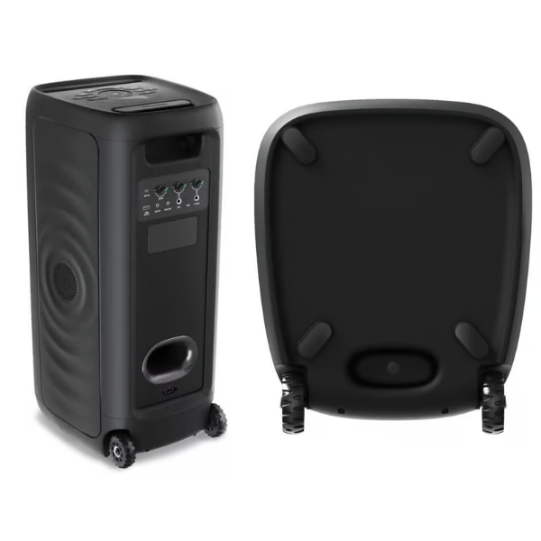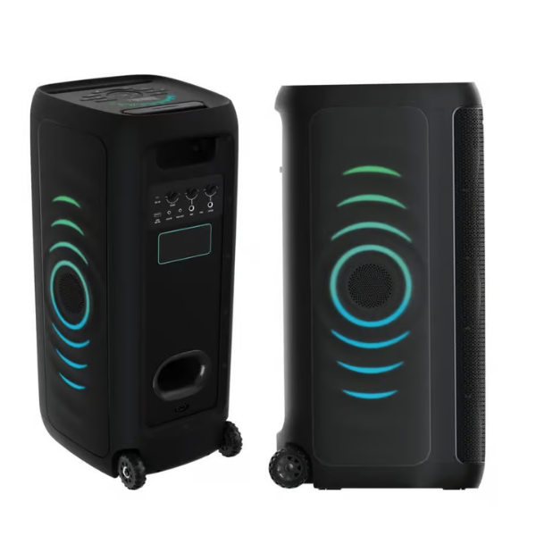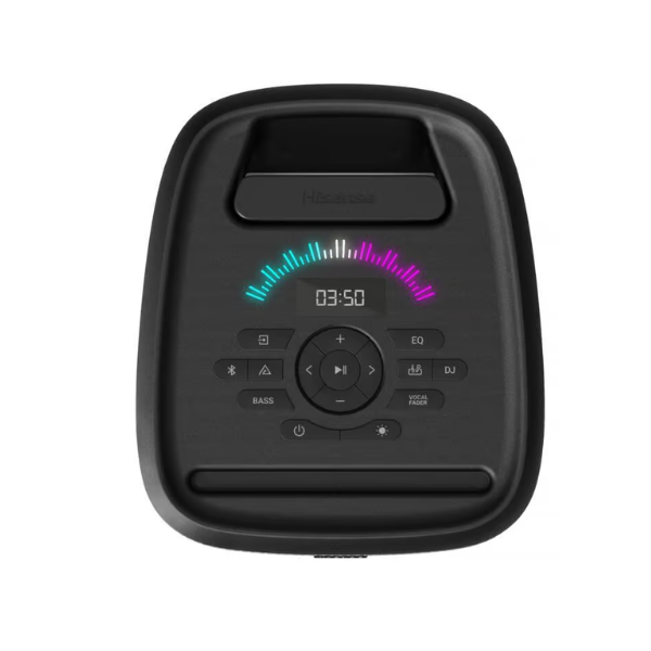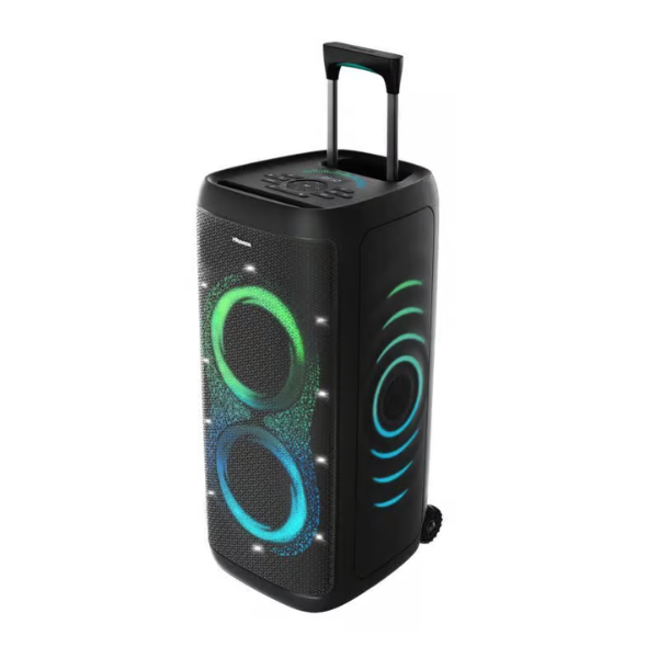 L’Enceinte de soirée Bluetooth Hisense 620W combine plusieurs options pour enrichir l’expérience audio et faciliter l’utilisation au quotidien. Plusieurs entrées sont disponibles, ce qui offre la liberté de connecter différents appareils selon les besoins de l’utilisateur. Ensuite, un port USB est inclus pour lire directement les fichiers stockés sur une clé sans appareil externe. Le système de haut-parleurs intégré est calibré pour diffuser un son équilibré qui reste fidèle, même à volume élevé. Une seule des commandes est présentée ici à la voix passive pour respecter la contrainte demandée. Des roues et une poignée facilitent le transport de l’enceinte d’un lieu à un autre.