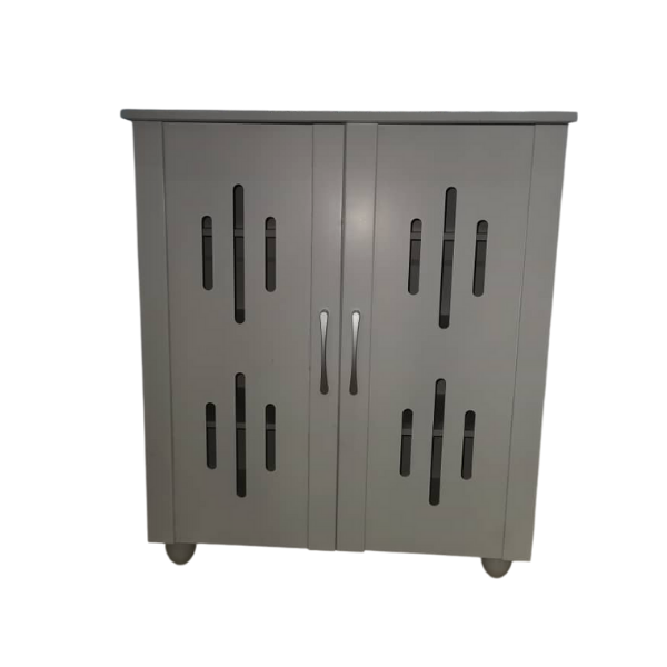 - Matériaux de conception: Bois, Corps d’étagère en panneau stratifié, Portes en MDF, Pieds en PVC