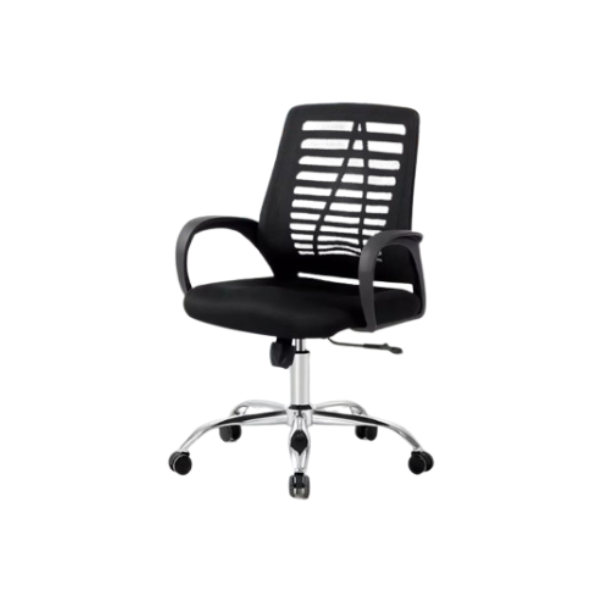 Fauteuil Visiteur Maille Noire Piétement Chromé-948