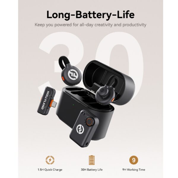 Le Hollyland LARK M2S a un autonomie pour chaque émetteur qui atteint 6 heures, ce qui convient aux sessions d’enregistrement classiques. La recharge se fait via USB-C, ce qui facilite l’usage quotidien. Le micro est omnidirectionnel, il capte le son de manière uniforme autour de lui. Cela garantit une voix claire, même si l’utilisateur bouge légèrement. Il permet aussi l’enregistrement en mono ou en stéréo selon les besoins. Grâce à sa compacité, il se glisse facilement dans une poche ou un sac. Le système ne nécessite pas de configuration complexe, ce qui le rend accessible à tous. Il est idéal pour les interviews, les tutoriels ou les vidéos en déplacement. Que ce soit pour filmer en intérieur ou enregistrer en extérieur, le LARK M2S offre une captation vocale fiable et professionnelle.