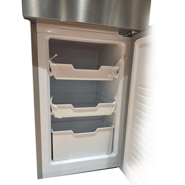 Faites le plein de vos aliments avec ce réfrigérateur combiné Enduro RMP246X. En effet, c’est un appareil 2 en 1 c’est-à-dire il dispose d’un réfrigérateur et d’un congélateur. Ainsi, il a une capacité totale de 246 L, ce qui signifie qu’il peut contenir une bonne quantité d’aliments. D’ailleurs, son compartiment réfrigérant dispose 146 L tandis que la partie congélateur fait 100 L. De plus, il dispose un froid ventilé dans le réfrigérateur et dans le congélateur.