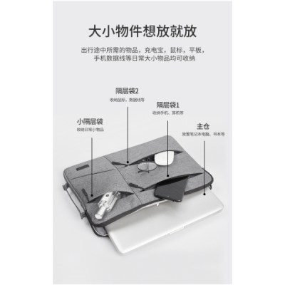 Le Sac ordinateur SHENGBEIER 801 14″ aun organisation interne qui facilite le rangement des accessoires essentiels. Une poche principale accueille l’ordinateur, tandis que des compartiments secondaires permettent de glisser chargeur, souris, stylos ou documents. Le contenu est sécurisé par une fermeture éclair fluide et robuste. Elle peut être portée à la main ou en bandoulière grâce à ses poignées renforcées et sa sangle ajustable. Son poids léger rend les déplacements plus confortables, même lors d’une journée bien remplie. Ce modèle est apprécié pour son équilibre entre style, protection et praticité.